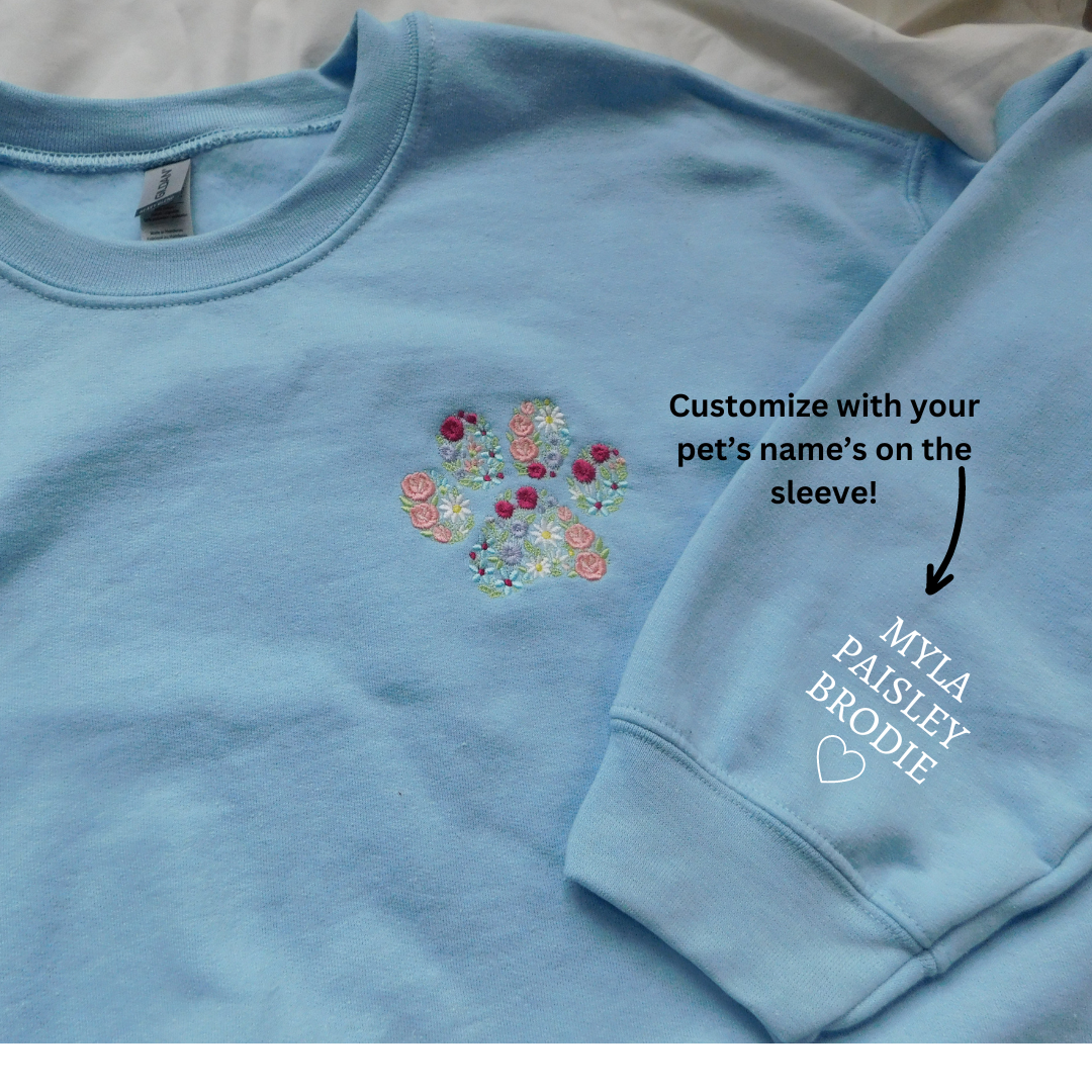 Elevate your style with our Embroidered Paw Sweatshirt, a chic and cozy tribute to your furry friend. Imprinted with an adorable floral paw, this sweatshirt is a fashionable expression of your love for animals. Whether you're a proud pet parent or a dedicated animal lover, this sweatshirt is a stylish way to wear your heart on your sleeve, celebrating the joy and companionship that our furry friends bring to our lives.