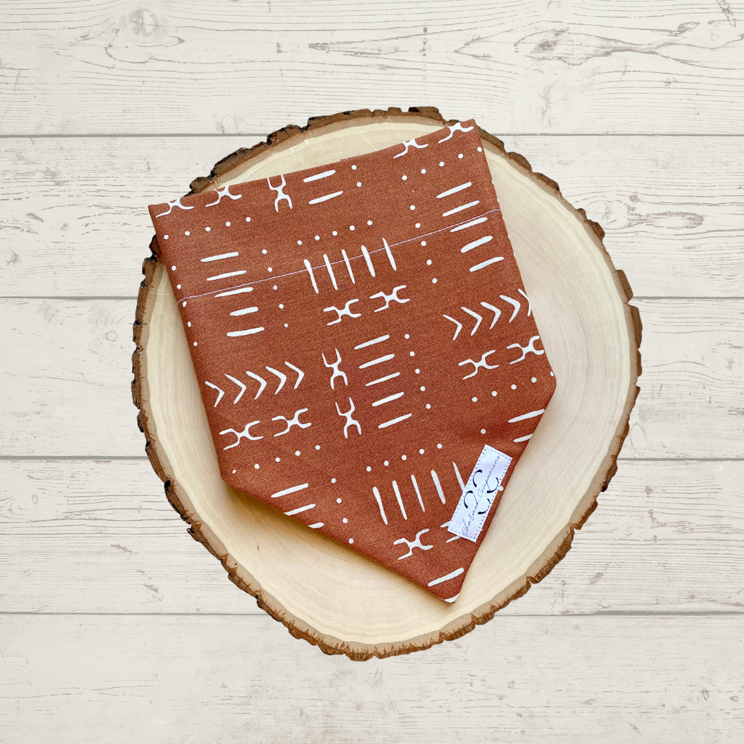 This bandana is the same pattern on both sides. It is available in either a slip-on version (which goes over the collar), or a traditional tie-on version. Your pet's name or another special request can also be added to further customize!